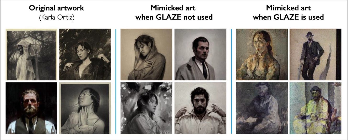 In the interview, creators’ hero Ben refers to Belgian illustrator Kim Van Deun, whose email to him in 2022 prompted him to apply knowledge gained from his earlier tools fighting the “overreach of technology” to help artists take on AI-generated substitutes. Ben also refers to conceptual artist Karla Ortiz — who is suing image generators Stability, Midjourney, DeviantArt, and Runway over copyright infringement — as he explains how Glaze makes her art look substantially different in the ‘eyes’ an AI model.
