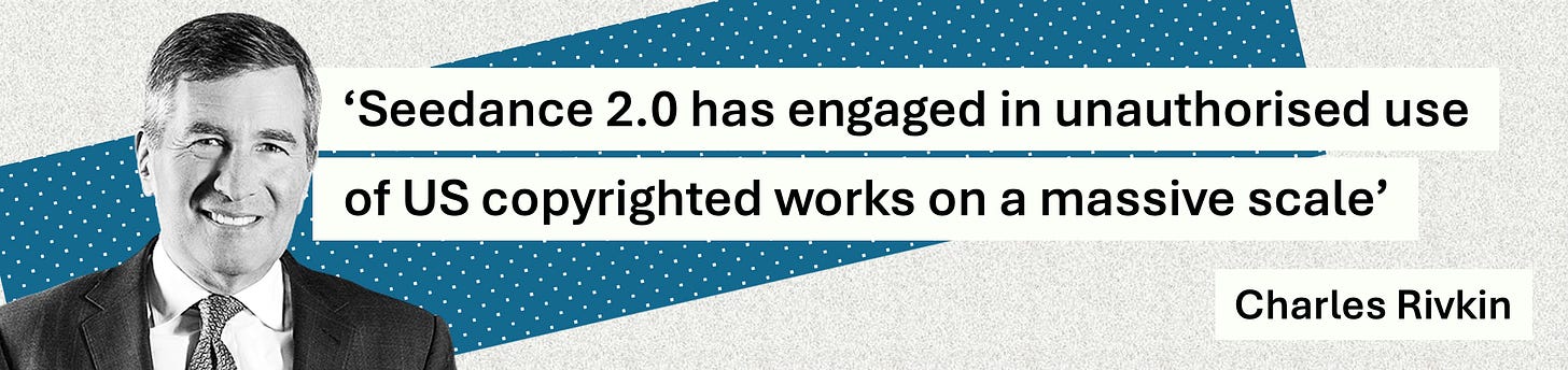 “In a single day, the Chinese AI service Seedance 2.0 has engaged in unauthorised use of US copyrighted works on a massive scale,” said Rivkin. “By launching a service that operates without meaningful safeguards against infringement, ByteDance is disregarding well-established copyright law that protects the rights of creators and underpins millions of American jobs. ByteDance should immediately cease its infringing activity.”