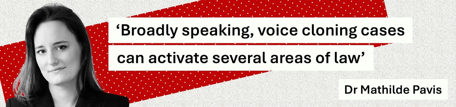 Dr Mathilde Pavis, a leading expert in digital replicas, told Charting it wasn’t uncommon “for voice professionals to receive messages from people saying they’ve just heard them on a new product release, only to discover that it is in fact an AI-generated voice”. Asked what legal avenues were open to Greene, Pavis — legal counsel for OpenOrigins, the deepfake detection specialist, and legal adviser to performers’ union Equity — said: “The answer depends heavily on jurisdiction, but broadly speaking, voice cloning cases can activate several areas of law. Intellectual property (IP) rights may come into play in the form of performers’ rights, and occasionally copyright. But those typically require that the person’s actual recordings or performance have been used. Data protection law can also be relevant, because voice data is at least personal data and often biometric data when processed for voice modelling.